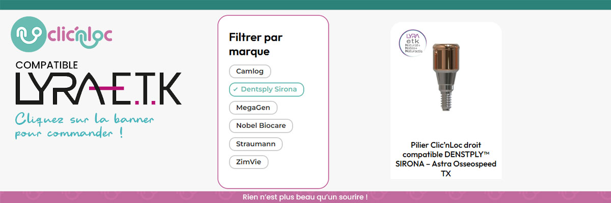 L'attachement implantaire Clicnloc pour la gamme LYRA ETK est la combinaison d'un produit innovant et de plus de 45 ans d'expérience en attachements dentaires. Ce dispositif de fixation se préoccupe du confort de votre patient et de l'évolution de ses besoins.