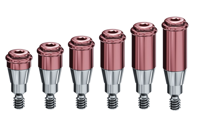 Le nouvel emballage tout-en-un fournit les composants nécessaires pour le cas clinique : Le pilier implantaire, le boîtier d'attachement pour la prothèse avec l'insert de travail, les inserts de rétention (zéro, faible, moyen et élevé) et l'entretoise de blocage.