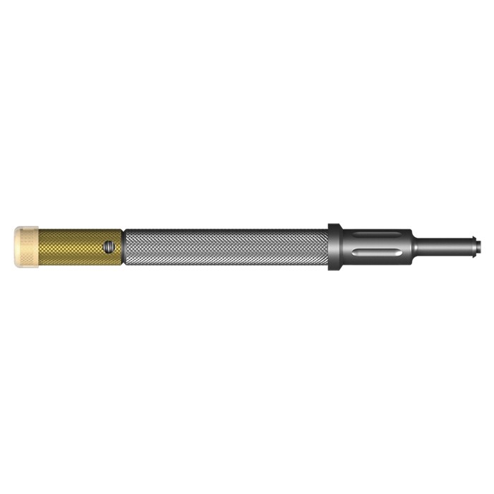 La partie dorée se présente sur le pilier et permet de pré visser le pilier LOCATOR en bouche grâce à son triangle en relief. De l'autre côté de cette pièce, vous remarquerez un hexagone dans lequel vous viendrez insérer un tournevis hexagonal de (1.25mm).