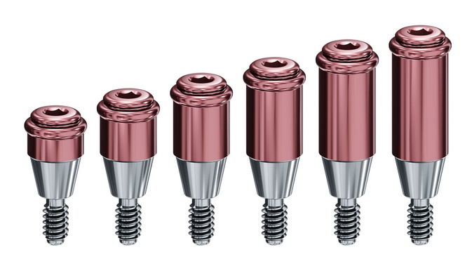Le nouvel emballage tout-en-un fournit les composants nécessaires pour le cas clinique : Le pilier implantaire, le boîtier d'attachement pour la prothèse avec l'insert de travail, les inserts de rétention (zéro, faible, moyen et élevé) et l'entretoise de blocage.
